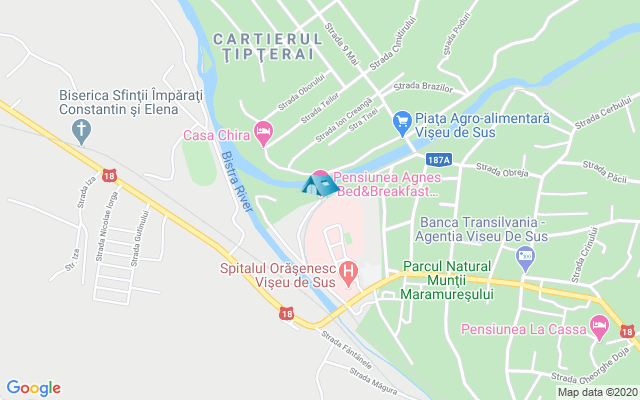 Campingul este situata la 500 m de centrul orașului Vișeu de Sus, in curtea pensiunii cu acelasi nume, dar într-o zona necirculata și liniștită pe malul râului Vaser.